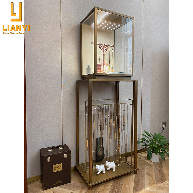 LIANYI DISPLAY is a Glass Top Jewellery Pedestal Jewelry Display Cases trustworthy supplier of turnkey custom retail solutions and visual merchandising displays. In order to design high-end showcases, LIANYI Jewelry Showcase Company has specially customized high-end accessories, with a wide variety and different materials. In order to meet different functional and decorative requirements, all strictly follow the requirements of international standards, and have undergone many acid-base, corrosion tests. Ensure long-term safety and no deformation.